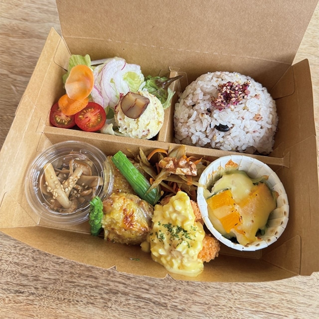 少しずついろんな味を楽しみたい方におすすめ! 日替わりのおかずをバランスよく盛り付けた当店人気No.1メニュー! 当店人気のランチメニューを、そのままご家庭や職場でもお楽しみいただけるようになりました。ひとつひとつ心を込めて手作りしたお弁当は、味もボリュームも大満足!忙しい日のお昼ご飯に、お出かけのお供に、ぜひご利用ください。 ~ご注文について~ ※テイクアウトお弁当のご予約は、 ●オンライン注文⇒お受取り希望日の2日前まで ●電話注文⇒お受取り希望日の前日の12時まで にご注文をお願い致します。 ※システム上、1週間先までの表示となります。1週間以上先のご注文をご希望の際は、お手数ですが店舗(0749-53-4230)までお電話にてご予約をお願い致します。 ※10個以上のご注文をご希望の際は、お手数ですが店舗(0749-53-4230)までお問合せください。