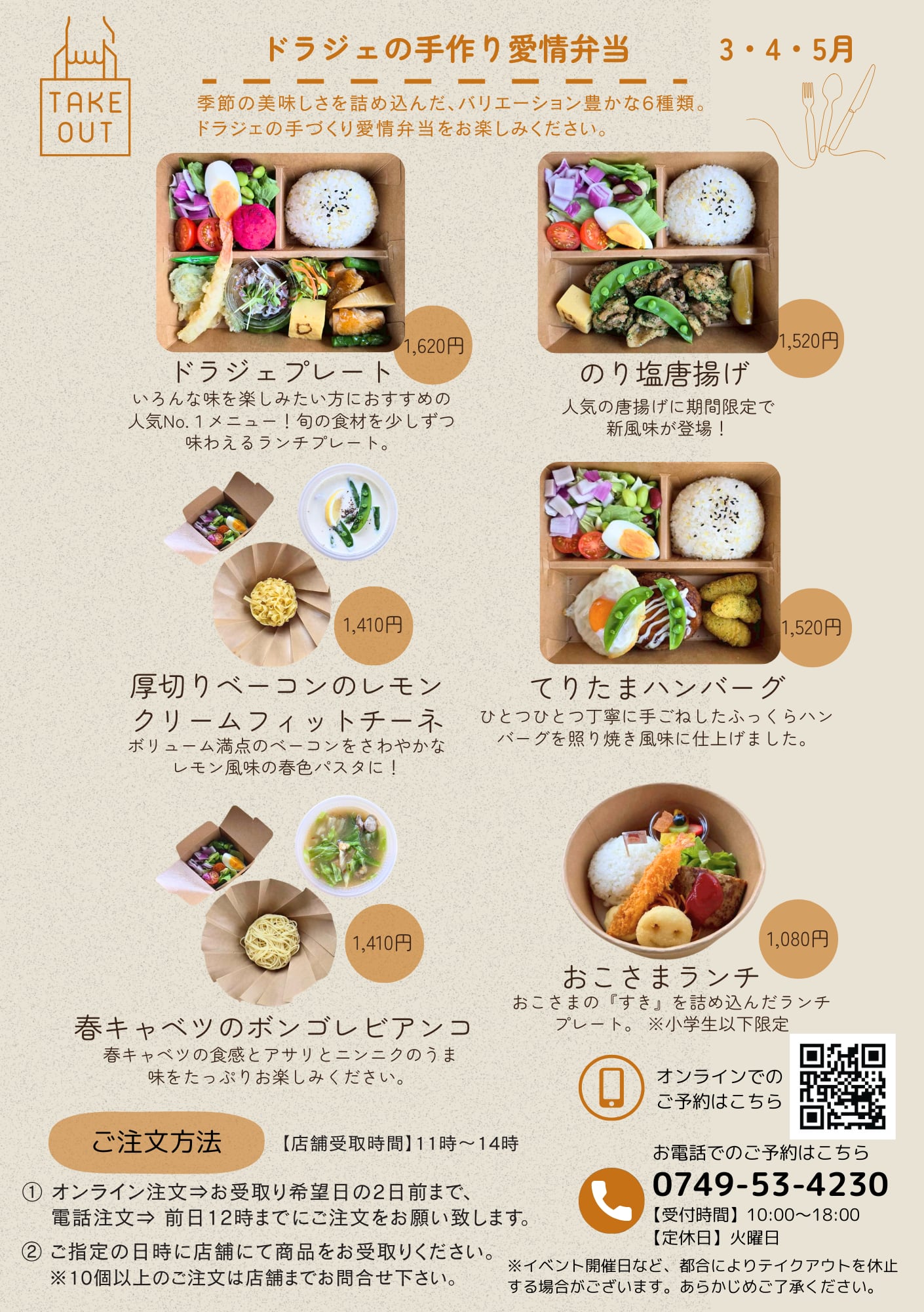 ※テイクアウトお弁当のご予約は、